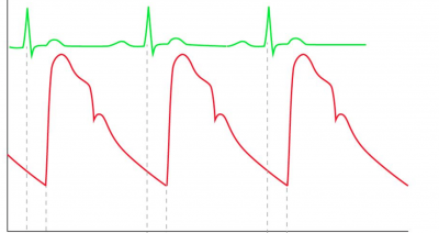Therefore, the pulse wave which is measured is, apart from the heartbeat also influenced by the pressure, the contractility, aortic valve flow, arterial peripheral resistance, diastolic pressure, the pattern of the electrical activation.