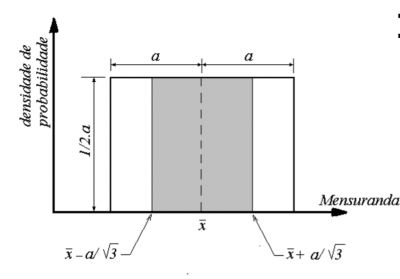 Rectangular distribution (Figure 72) is chosen because it is the common and more precise way to calculate the resolution of instruments or tolerances as well as guidelines of influence when only the variation limits are known (eg temperature, pressure, etc.). It is more precise for a small number of measurements and more accurate for this case. This can be seen in Figure 54 Formula 1.